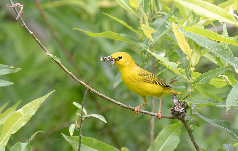 A highlight of Spring migration is always the arrival of Warblers. This Yellow Warbler, with a mouthful of insects for her young, reassures us that new life is continually being created and sustained!